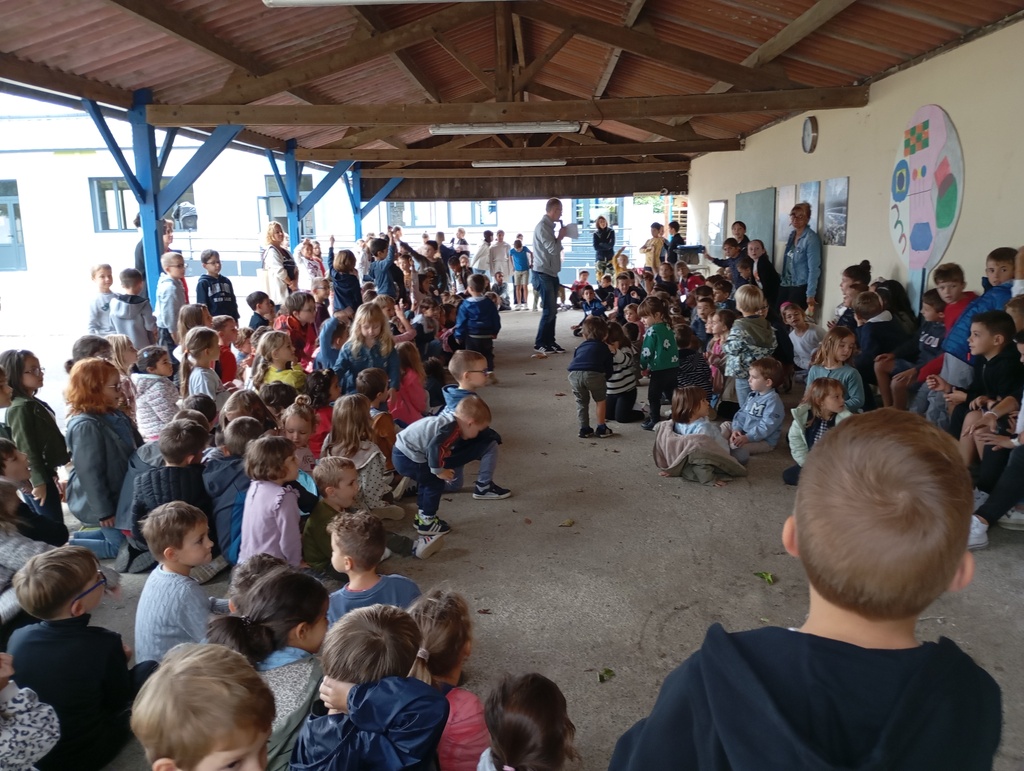 Les adultes de l'école ont ensuite présenté des objets en rapport avec le thème d'année : micro, partition, instruments de musique...