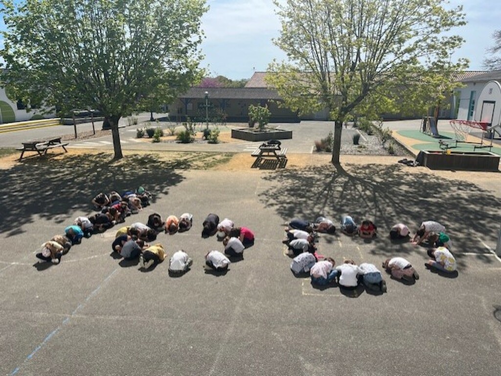 L'après-midi, lecture/écriture autour du nombre 100, sport au parc du Plessis puis photo avec tous les CP réunis pour former le nombre 100. Pour terminer, nous avons pris un goûter tous ensemble. En fin de journée, les CP ont réalisé une œuvre avec 100 empreintes dans la classe d'Eloïse.